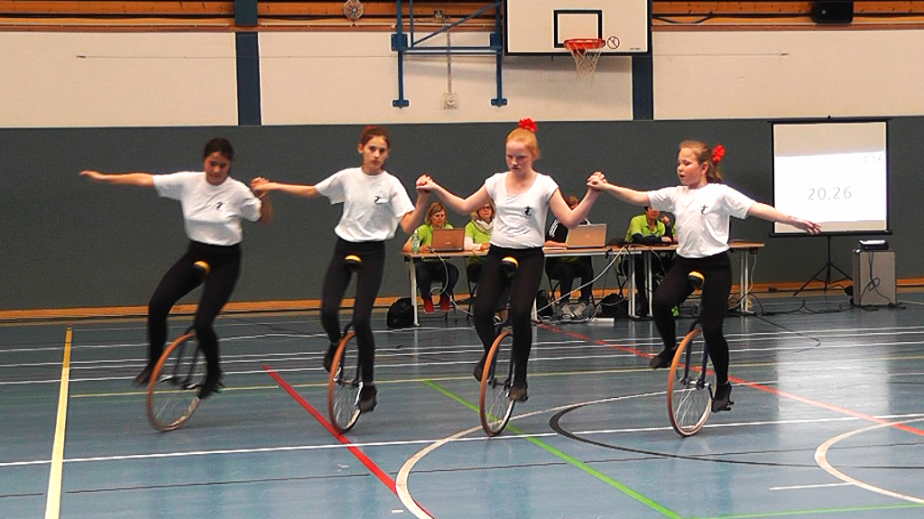 Diese Mädels (v.l.n.r.) Leela Schützenberger, Charlotte Seidler, Aline Erben, Paula Schneider, sind unsere neue Mannschaft im Einrad. Auch sie haben sich im ersten Jahr gut präsentieren können. Sie sind auch gern gesehene Gäste bei Veranstaltungen (Grüne Woche, Spargelfest, Sanddornfest). Für das Jahr 2017 haben sich die Mädels etwas neues vorgenommen. Lasst Euch überraschen.