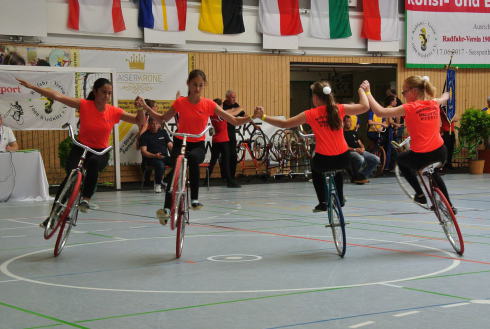 Als ehemalige Kunstradfahrerinnen haben wir nie den Spaß an diesem Sport verloren. Anlässlich zum 100jährigen Vereinsjubiliäum fanden wir uns zu dieser Formation zusammen und trainieren nunmehr wieder seit 1994/95. Mehrere Jahre haben wir Wettkämpfe bestritten und unseren Spaß dabei - Nervosität inbegriffen.